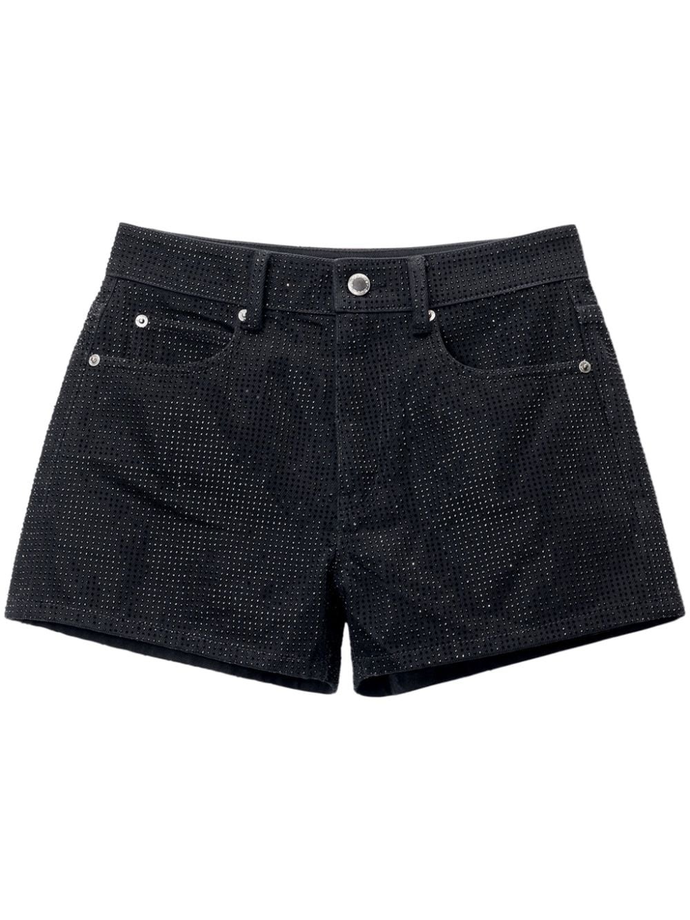 high-rise denim shorts Highlights - Black - Cotton - Washed denim - High-rise - Concealed fly and button fastening - Belt loops - Rhinestone embellishment - Classic five pockets - Logo patch to the rear - Thigh-length Imported Composition Cotton 100%