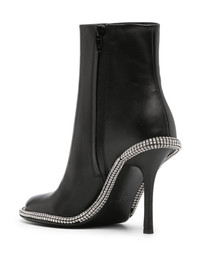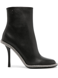 Kira 105mm ankle boots Alexander Wang presents a contemporary twist to the classic ankle boot with the Kira style. Made from leather, the crystal trim that lines the upper adds a distinctive touch to this design. Highlights - Black - Calf leather - Crystal embellishment - Contrasting trim - Round toe - Concealed side zip fastening - High stiletto heel Made in United Kingdom Composition Outer: Calf Leather 100% Sole: Calf Leather 100% Lining: Calf Leather 100% SIZE & FIT Measurement CIRCUMFERENCE 10.23 in(26 cm) HEEL 4.72 in(12 cm) HEIGHT 5.11 in(13 cm) Sole height 0.39 in(1 cm)