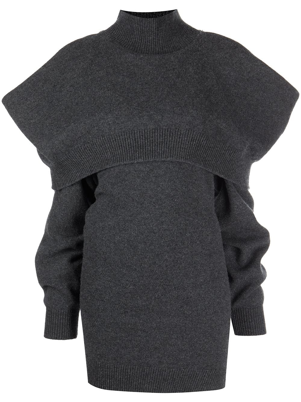 knitted cold-shoulder mini dress charcoal grey wool knitted construction ribbed-knit edge cold-shoulder design mock neck long sleeves above-knee length Imported Composition Wool 100% SIZE & FIT Model measurements Height 5 ft 10 in(1.79 m) Bust/Chest 29.92 in(76 cm) Hips 34.25 in(87 cm) Waist 24.01 in(61 cm) FittingInformation This piece fits true to size. We recommend you get your regular size Cut for a slim fit Made with a mid-weight fabric Washing instructions Dry Clean Only