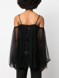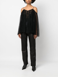 lace-embroidered charmeuse tunic top Highlights - Black - Silk - Charmeuse - Lace embroidery - Tulle overlay - Cold-shoulder design - Adjustable spaghetti straps - Single rear button fastening - V-neck - Flared hem Imported Composition Nylon 100%, Silk 100%, Cotton 80%, Polyamide 20% SIZE & FIT Model measurements Height 5 ft 10 in(1.78 m) Bust/Chest 32.67 in(83 cm) Hips 35.43 in(90 cm) Waist 23.22 in(59 cm) FittingInformation Designed for a slim fit that sits just away from the body offering a close yet comfortable fit The adjustable shoulder straps allow for a preferred fit when worn Made from a lightweight non-stretch fabric This piece fits true to size – take your usual size Washing instructions Dry Clean Only