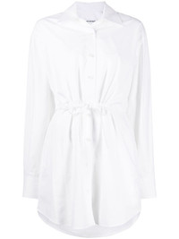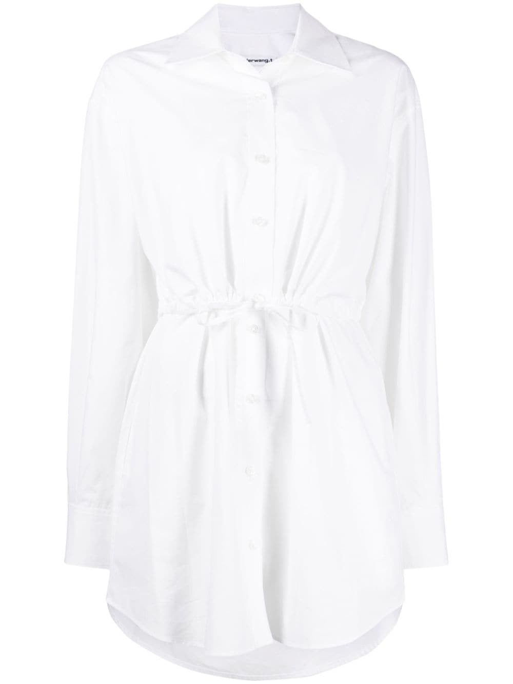 layered cotton shirtdress This piece from Alexander Wang is a modern reworking of the classic shirtdress: it's fitted with a cropped overlay at the top. It's cut from white cotton and is equipped with a self-tie drawstring that can be used to cinch the silhouette. Highlights - White - Cotton - Layered design - Classic collar - Front button fastening - Drawstring fastening - Long sleeves - Buttoned cuffs - Curved hem Imported Composition Cotton 100% SIZE & FIT Model measurements Height 5 ft 10 in(1.78 m) Bust/Chest 30.31 in(77 cm) Hips 34.64 in(88 cm) Waist 24.01 in(61 cm) FittingInformation Designed to be unstructured, offering a loose fit throughout The adjustable tie waist gives a more adaptable and personalised fit Made from a midweight non-stretch fabric This piece fits true to size – take your usual size Measurement BUST 40 in(101.6 cm) LENGTH 32.99 in(83.8 cm) WAIST 37.99 in(96.5 cm) SLEEVE LENGTH 24.01 in(61 cm) HIPS 42 in(106.7 cm) Washing instructions Dry Clean Only