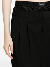 layered-design wool trousers Alexander Wang seamlessly adds streetwear-inspired accents to timeless silhouettes for its latest offering, as shown by these black wide-leg trousers. They're spun from wool and feature a layered waist that creates the effect of exposed boxer briefs. Highlights - Black - Wool - Tailored design - Mid-rise - Layered design - Logo patch to the front - Wide leg Imported Composition Filling: Polyester 100% Body: Silk 100% Outer: Wool 100% SIZE & FIT Model measurements Height 5 ft 10 in(1.78 m) Bust/Chest 29.13 in(74 cm) Hips 35.43 in(90 cm) Waist 23.62 in(60 cm) FittingInformation Designed with a wide-leg cut, these trousers allow for a close fit at the waist and offer a loose and roomy fit over the leg The elasticated waist allows for a comfortable fit Made from a midweight non-stretch fabric This piece fits true to size – take your usual size Washing instructions Dry Clean Only