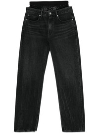 layered jeans Highlights - Grey - Cotton - Washed denim - Layered design - Concealed fly and button fastening - High-rise - Elasticated logo waistband - Mesh panelling - Rhinestone embellishment - Belt loops - Classic five pockets - Whiskering effect at the thighs - Logo patch to the rear - Side slits - Straight leg Imported Composition Cotton 100%, Polyamide 81%, Elastane 19% SIZE & FIT Model measurements Height 5 ft 9 in(1.75 m) Bust/Chest 31.88 in(81 cm) Hips 34.64 in(88 cm) Waist 24.01 in(61 cm) FittingInformation Designed for a straight-leg fit, these jeans allow for a close fit at the waist and an unrestricted and comfortable fit over the leg Sturdy and hard-wearing, this denim piece offers no stretch