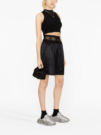 layered silk-charmeuse boxer shorts These Alexander Wang boxer short riff on sports styles. They’re crafted to a loose silhouette from silk charmeuse and topped with a sheer mesh panel at the elasticated waist. Highlights - Black - Silk - Layered design - Micro-mesh panels - High waist - Elasticated waistband - Above-knee length Imported Composition Silk 100%, Polyamide 83%, Elastane 17% SIZE & FIT Model measurements Height 5 ft 9 in(1.75 m) Bust/Chest 31.88 in(81 cm) Hips 33.85 in(86 cm) Waist 24.01 in(61 cm) FittingInformation Designed for a relaxed, roomy fit Made from a lightweight non-stretch fabric This piece fits true to size – take your usual size