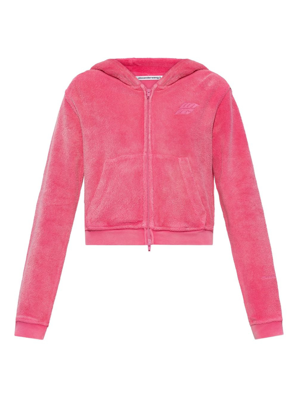 leaf-embroidered hooded zip-up top Highlights - Pink - Cotton - Hooded neckline - Zip fastening - Embroidered leaf detail - Long sleeves Imported Composition Cotton 100% Washing instructions Read Manufacturer Guidelines