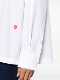 logo-applique cotton shirt Highlights - White - Cotton - Poplin texture - Applique logo to the front - Straight-point collar - Long sleeves - Buttoned cuffs - Straight hem Imported Composition Cotton 100% SIZE & FIT Model measurements Height 5 ft 10 in(1.78 m) Bust/Chest 33.07 in(84 cm) Hips 36.61 in(93 cm) Waist 24.8 in(63 cm) FittingInformation Designed for a boxy fit, intended for a loose fit throughout Made from a midweight non-stretch fabric Washing instructions Dry Clean Only