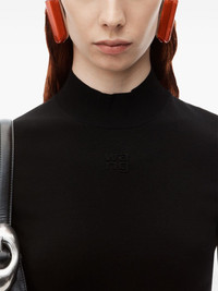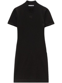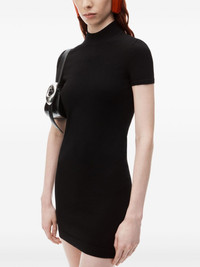 logo-embossed mock-neck dress Highlights - Black - Bodycon design - Embossed logo to the front - Mock neck - Short sleeves - Thigh-length - Straight hem Imported Composition Viscose 50%, Polyester 29%, Polyamide 18%, Elastane 3%