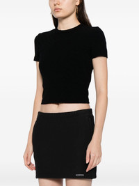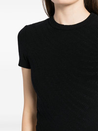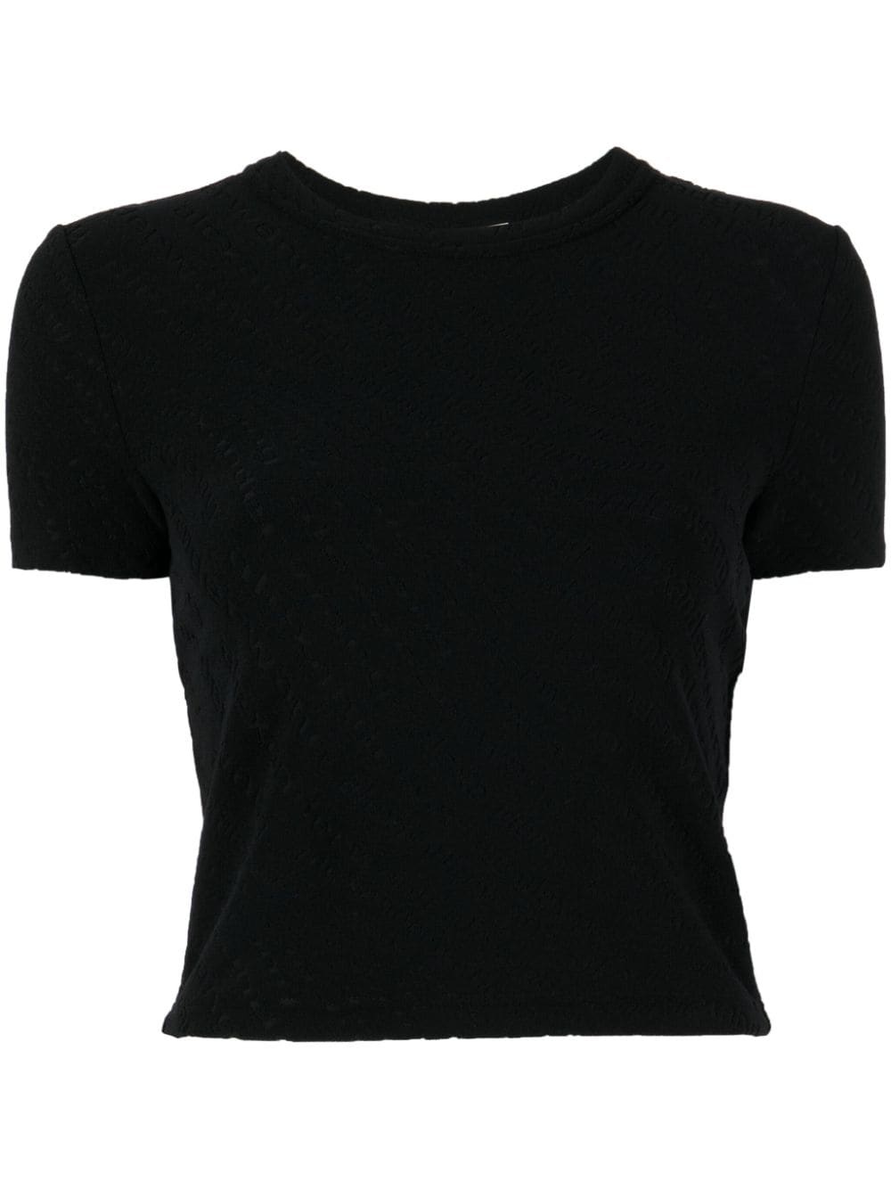 logo-jacquard knitted top Highlights - Black - Stretch-design - Knitted construction - Jacquard logo motif - Crew neck - Short sleeves - Straight hem Imported Composition Polyamide 97%, Elastane 3% SIZE & FIT Model measurements Height 5 ft 10 in(1.78 m) Bust/Chest 30.31 in(77 cm) Hips 34.64 in(88 cm) Waist 24.01 in(61 cm) FittingInformation Designed for a close fit throughout Cropped in length Made with a midweight knit, this piece offers some stretch Washing instructions Hand Wash