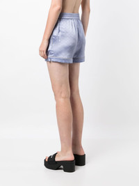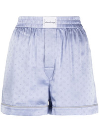 logo-jacquard silk boxer shorts Highlights - Powder blue - Silk - Patterned jacquard - Logo patch to the front - Elasticated waistband - Pleat detailing - Thigh-length Made in Italy Composition Silk 100% SIZE & FIT Model measurements Height 5 ft 10 in(1.77 m) Bust/Chest 31.49 in(80 cm) Hips 35.43 in(90 cm) Waist 25.19 in(64 cm) FittingInformation Designed for a relaxed, roomy fit The elasticated waist allows for a comfortable fit Made from a lightweight non-stretch fabric This piece fits true to size – those with curvy hips may wish to take one size up