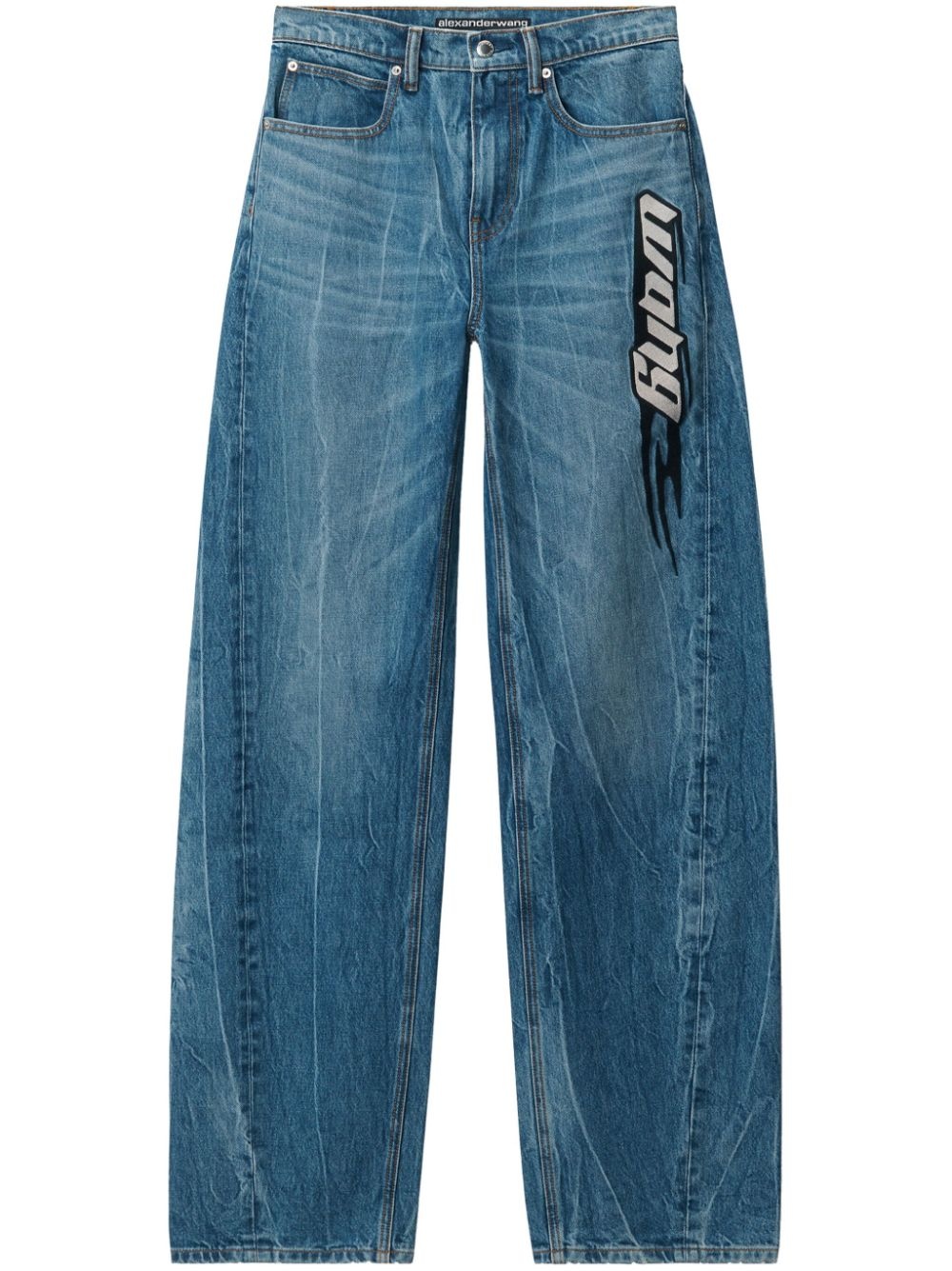 logo-patch ballloon jeans Highlights - Blue - Cotton - Denim - Logo patch to the front - Front button and zip fastening - Belt loops - Logo patch to the rear - Classic five pockets - Wide leg Made in United States Composition Cotton 100% Washing instructions Dry Clean Only