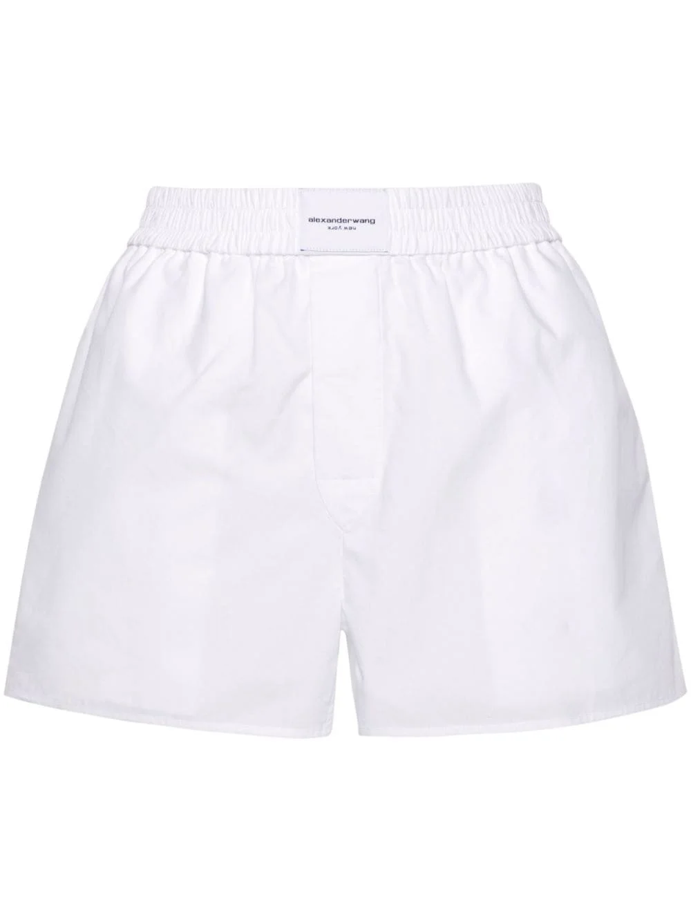 logo-patch boxer shorts Highlights - White - Cotton - Poplin texture - Elasticated waistband - Button fly fastening - Two side inset pockets - Short side slits - Thigh-length Imported Composition Cotton 100% SIZE & FIT Model measurements Height 5 ft 10 in(1.78 m) Bust/Chest 31.49 in(80 cm) Hips 35.03 in(89 cm) Waist 23.62 in(60 cm) FittingInformation Designed for a relaxed, roomy fit The elasticated waist allows for a comfortable fit Made from a lightweight non-stretch fabric This piece fits true to size – take your usual size Washing instructions Dry Clean Only