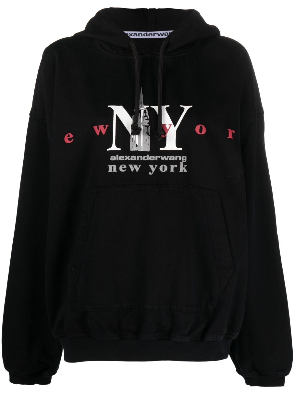 logo-print cotton-blend hoodie Alexander Wang's affinity for graphic-filled casual silhouettes is captured with this hoodie. Cut from a cotton and lyocell blend to an oversized silhouette, it spotlights exaggerated drop shoulders and a New York motif across the front. Highlights - Black/multicolour - Cotton-lyocell blend - Logo print to the front - Graphic print to the front - Drawstring hood - Drop shoulder - Long sleeves - Front pouch pocket Imported Composition Cotton 58%, Lyocell 42% SIZE & FIT Model measurements Height 5 ft 10 in(1.77 m) Bust/Chest 31.1 in(79 cm) Hips 35.03 in(89 cm) Waist 23.62 in(60 cm) Measurement SLEEVE LENGTH 20.47 in(52 cm) Shoulder Width 25.98 in(66 cm) LENGTH 24.8 in(63 cm) BUST 54.33 in(138 cm) FittingInformation Designed to be unstructured, offering a loose fit throughout Made from a midweight non-stretch fabric, this piece offers minimal elasticity when worn This piece fits true to size – take your usual size Washing instructions Machine Wash