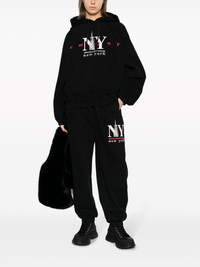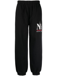 logo-print cotton-blend track pants Casual staples have remained a long-standing theme of Alexander Wang's collections, and these track pants continue this sentiment. Cut from a cotton and lyocell blend for a relaxed fit, a New York motif is printed on the side. Highlights - Black/multicolour - Cotton-lyocell blend - Logo print to the front - Graphic print to the front - Elasticated waistband - Two side slit pockets - Elasticated ankles Imported Composition Cotton 58%, Lyocell 42% SIZE & FIT Model measurements Height 5 ft 10 in(1.77 m) Bust/Chest 31.1 in(79 cm) Hips 35.03 in(89 cm) Waist 23.62 in(60 cm) FittingInformation Designed for a relaxed tapered cut, these trousers allow for a close fit at the waist and offer a loose fit at the thighs, with a closer fit toward the ankles The elasticated waist and hem offer a secure, comfortable fit Made from a midweight non-stretch fabric, this piece offers minimal elasticity when worn This piece fits true to size – take your usual size Washing instructions Machine Wash