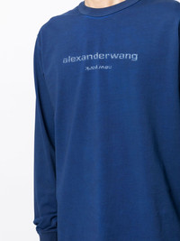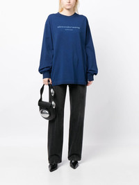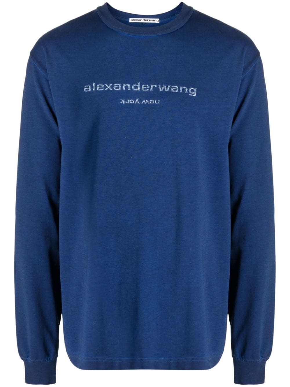 glitter-logo cotton sweatshirt Alexander Wang puts a playful spin on the classic sweatshirt with this design. It’s cut from navy-blue cotton to a crew-neck silhouette and enlivened with a glittered logo print at the chest. Highlights - Navy blue - Cotton - Glitter detailing - Logo print at the chest - Crew neck - Long sleeves - Ribbed cuffs - Straight hem - When buying this unisex item, keep in mind that it is graded in standard men's sizing. Imported Composition Cotton 99%, Elastane 1% Outer: Cotton 100% SIZE & FIT Model measurements Height 6 ft 2 in(1.87 m) Bust/Chest 34.25 in(87 cm) Hips 36.22 in(92 cm) Waist 29.52 in(75 cm) FittingInformation This unisex piece is designed for an oversized fit whether you usually select women's or men's sizes Constructed with additional length on the sleeve Washing instructions Machine Wash
