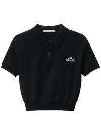 logo-print polo shirt Highlights - Black - Short front button fastening - Short sleeves - Ribbed cuffs and hem Made in United States Composition Viscose 74%, Polyamide 21%, Elastane 5%