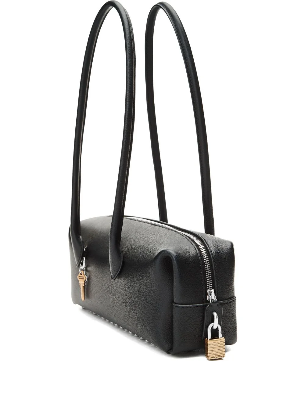 medium Roux key-charm shoulder bag Highlights - Black - Leather construction - Top handles - Padlock fastening - Zip fastening - Stud embellishment Imported Composition Outer: Calf Leather 100% Lining: Polyester 100% SIZE & FIT Measurement DEPTH 3.93 in(10 cm) HEIGHT 4.33 in(11 cm) STRAP 10.62 in(27 cm) WIDTH 12.99 in(33 cm)
