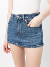 mid-rise denim skort Highlights - Blue - Cotton-lyocell blend - Denim - Mid-rise - Belt loops - Front button and zip fastening - Slim cut - Classic five pockets - Thigh-length Imported Composition Cotton 55%, Lyocell 44%, Elastane 1% SIZE & FIT Model measurements Height 5 ft 9 in(1.76 m) Bust/Chest 29.92 in(76 cm) Hips 35.82 in(91 cm) Waist 25.98 in(66 cm) FittingInformation Designed for a slim fit with a close-fitting internal layer Slightly short in length; consider your own measurements Constructed from stretch denim, this piece offers a stretch fit with durability This piece fits true to size – those with curvy hips may wish to take one size up