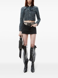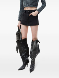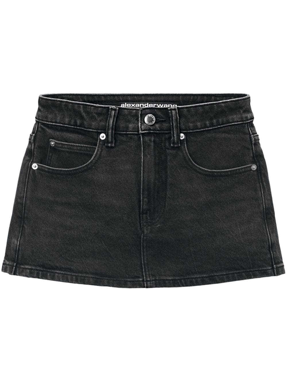 mid-rise denim skort Highlights - Black - Cotton-lyocell blend - Denim - Logo patch to the rear - Mid-rise - Belt loops - Concealed fly and button fastening - Classic five pockets - Straight hem Imported Composition Cotton 54%, Lyocell 45%, Elastane 1%