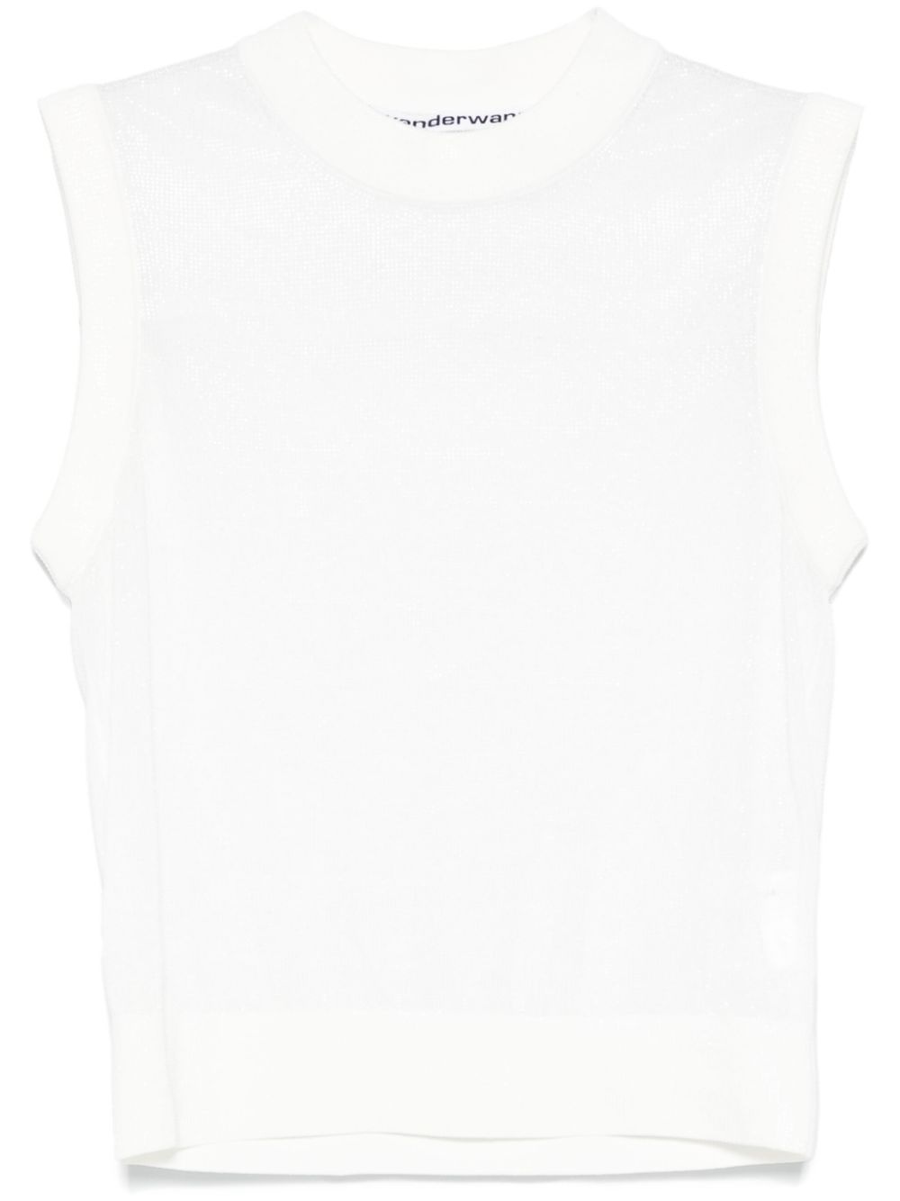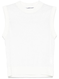 mock-neck tank top Highlights - White - Sleeveless - Ribbed cuffs and hem - Rhinestone embellishment Imported Composition Viscose 100% SIZE & FIT Model measurements Height 5 ft 10 in(1.78 m) Bust/Chest 33.46 in(85 cm) Hips 36.22 in(92 cm) Waist 23.22 in(59 cm) FittingInformation Designed for a slim fit that sits just away from the body offering a close yet comfortable fit Made from a midweight non-stretch fabric, this piece offers minimal elasticity when worn
