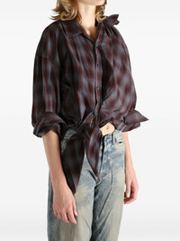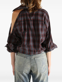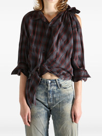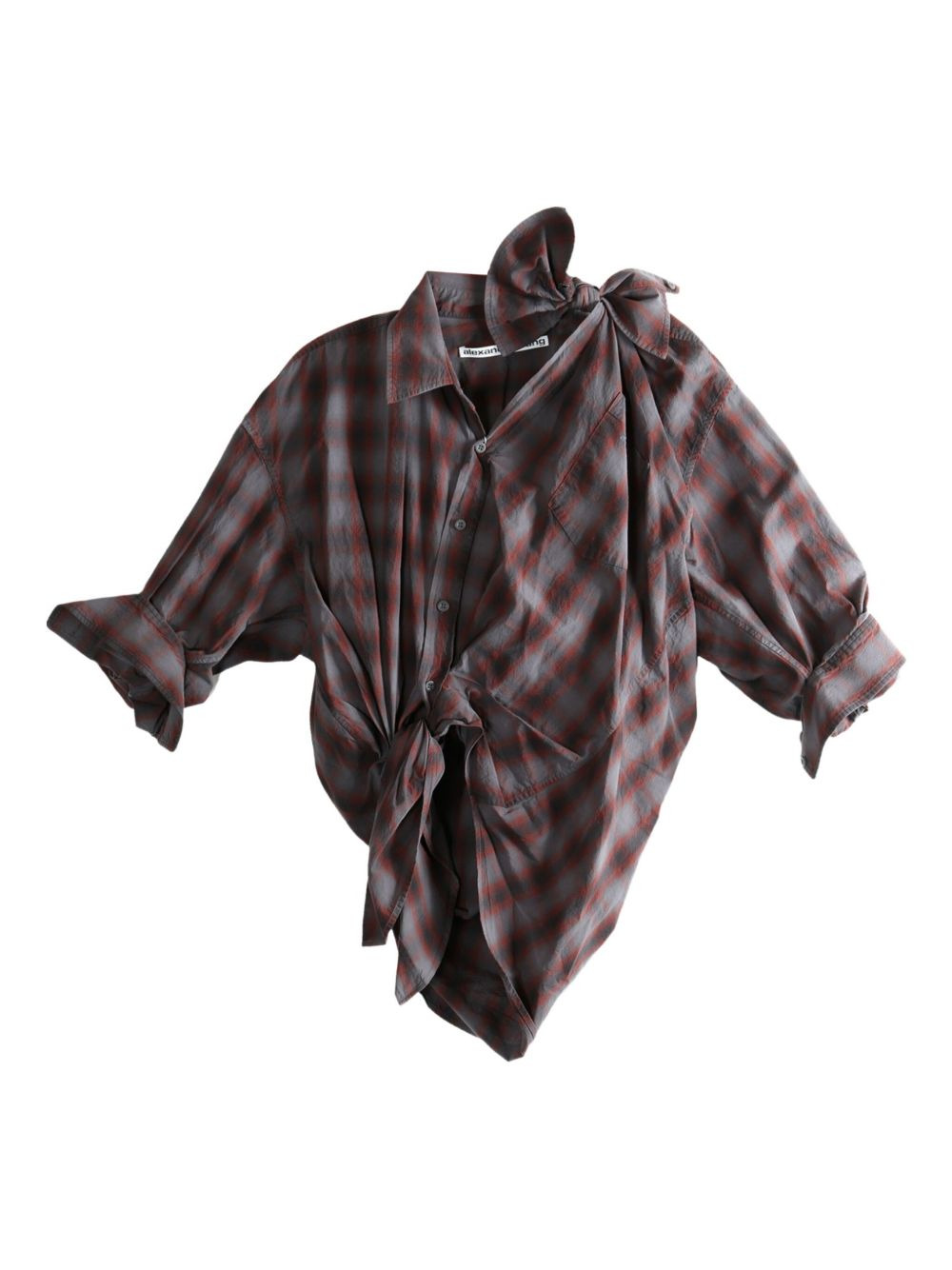 plaid one-shoulder shirt Highlights - Smog red and grey - Plaid pattern - Button fastening - One shoulder - Long sleeves - Knotted front Imported Composition Cotton 100% Washing instructions Read Manufacturer Guidelines