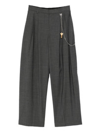 pleated key-chain trousers Highlights - Grey - Pleated design - Checked pattern - Key-chain detail - High waist - Wide leg Imported Composition Outer: Wool 86%, Polyamide 10%, Elastane 4% Lining: Viscose 100% SIZE & FIT Model measurements Height 5 ft 10 in(1.78 m) Bust/Chest 33.46 in(85 cm) Hips 36.22 in(92 cm) Waist 23.22 in(59 cm) Washing instructions Dry Clean Only
