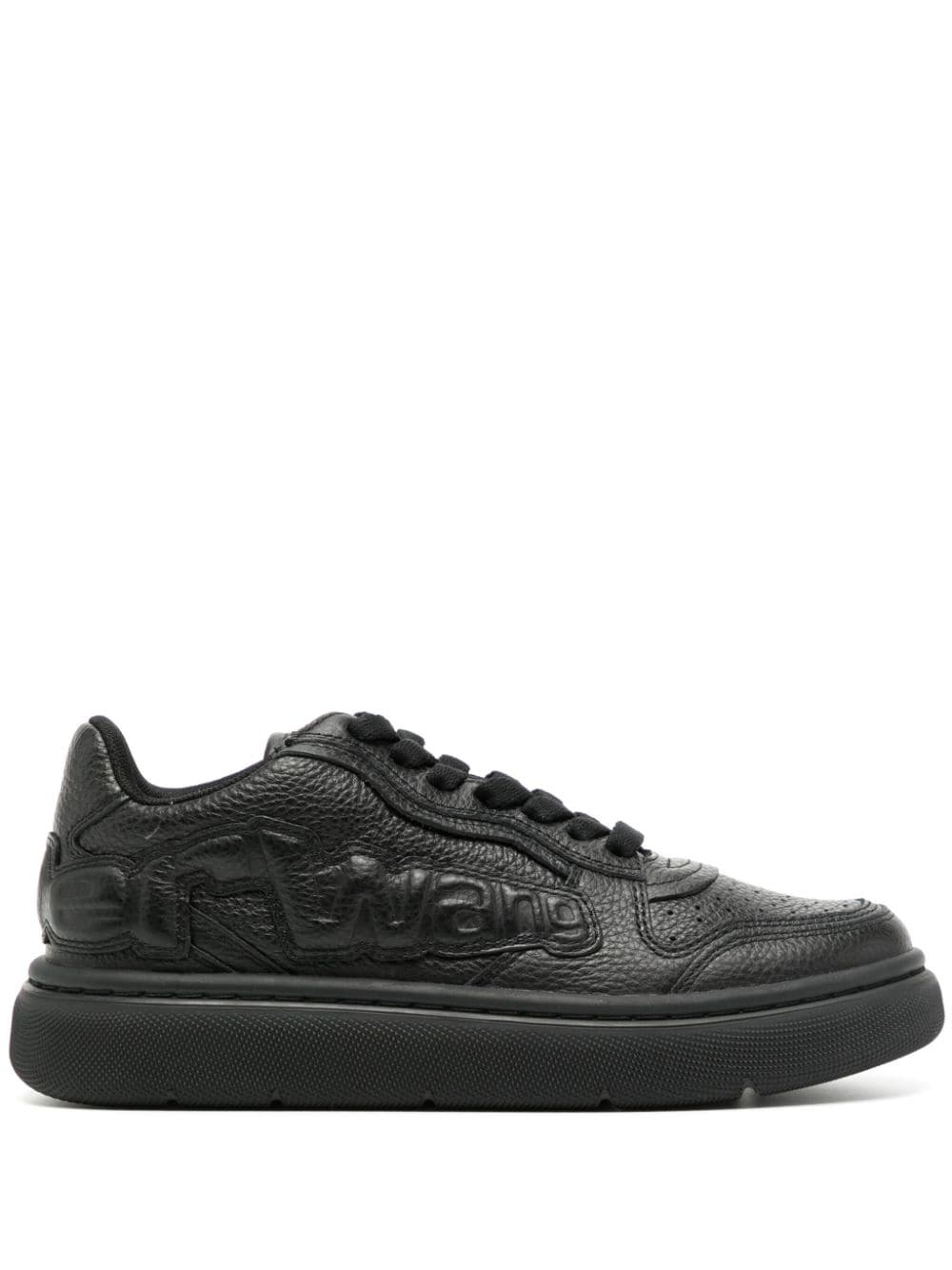 Puff logo-embossed sneakers Highlights - Black - Leather - Embossed logo to the side - Round toe - Perforated toebox - Front lace-up fastening - Branded leather insole - Flat rubber sole Imported Composition Outer: Leather 100%, Rubber 100% Lining: Other fibres 100% SIZE & FIT Measurement Inside Sole 1.18 in(3 cm)