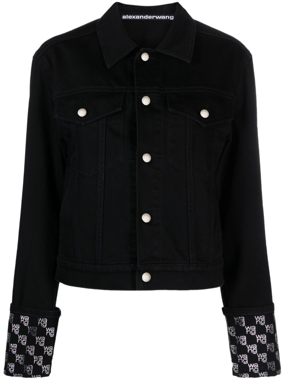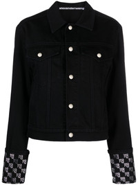 rhinestone-logo denim jacket Highlights - Black - Cotton - Denim - Rhinestone embellishment - Logo-print at the cuffs - Logo patch to the rear - Spread collar - Front button fastening - Long sleeves - Turn-up cuffs - Button-fastening chest pocket - Two side inset pockets - Straight hem Imported Composition Cotton 100% SIZE & FIT Model measurements Height 5 ft 10 in(1.78 m) Bust/Chest 31.49 in(80 cm) Hips 35.03 in(89 cm) Waist 23.62 in(60 cm) Measurement SLEEVE LENGTH 22.83 in(58 cm) LENGTH 20.47 in(52 cm) WAIST 34.64 in(88 cm) BUST 31.49 in(80 cm) FittingInformation Designed for a relaxed fit, this piece allows for comfort and movement when worn The adjustable tabs allow for fitted preferences Sturdy and hard-wearing, this denim piece offers no stretch This piece fits true to size – take your usual size Washing instructions Dry Clean Only