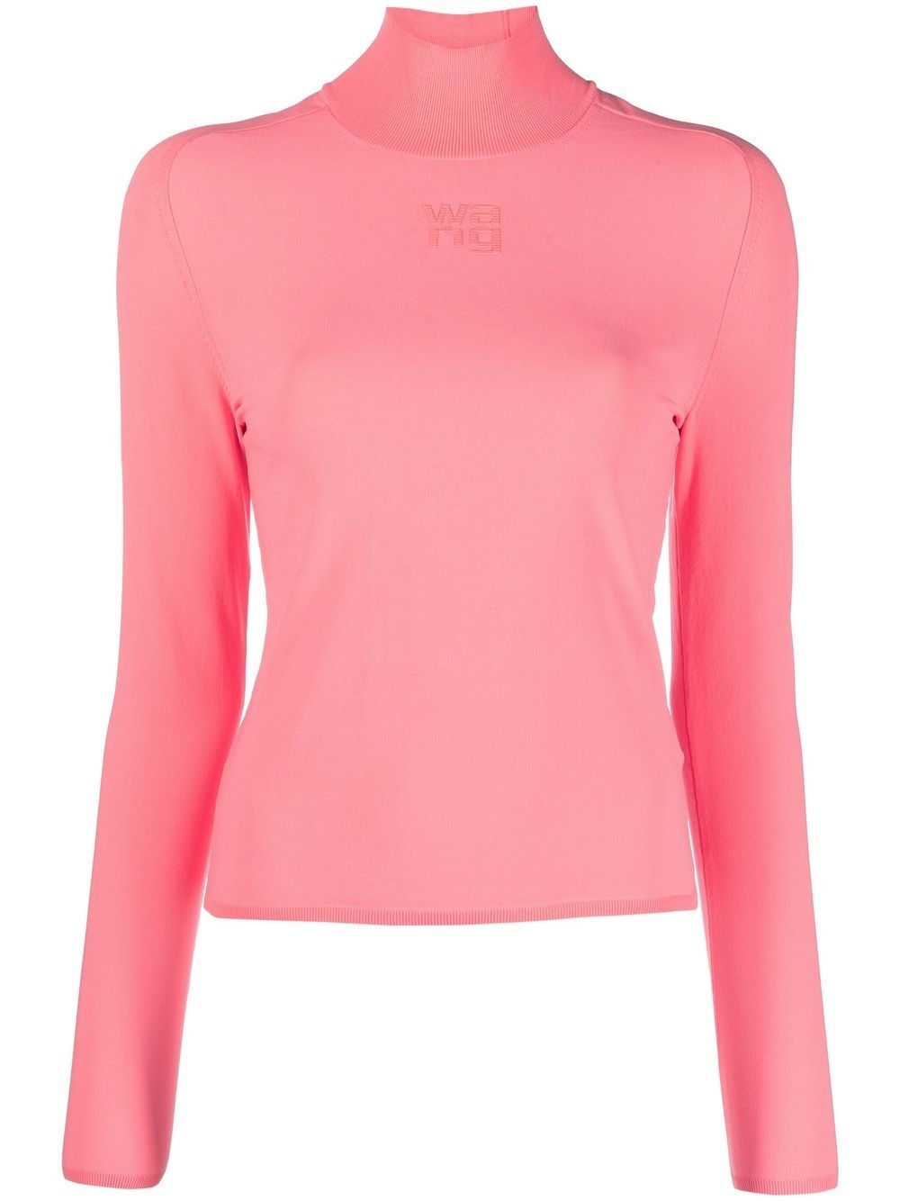 roll neck embossed-logo jumper Showing off the brand's cool, utilitarian design, this high-neck jumper from Alexander Wang features a stretch design in neon pink. This model is enhanced with a tonal brand logo on the chest and ribbed detailing on the collar and hem. Imported Composition Polyamide 92%, Elastane 8% SIZE & FIT Model measurements Height 5 ft 10 in(1.79 m) Bust/Chest 31.1 in(79 cm) Hips 35.03 in(89 cm) Waist 24.01 in(61 cm) FittingInformation This piece fits true to size. We recommend you get your regular size Cut for a close fit Made with a mid-weight stretch fabric Washing instructions Dry Clean Only