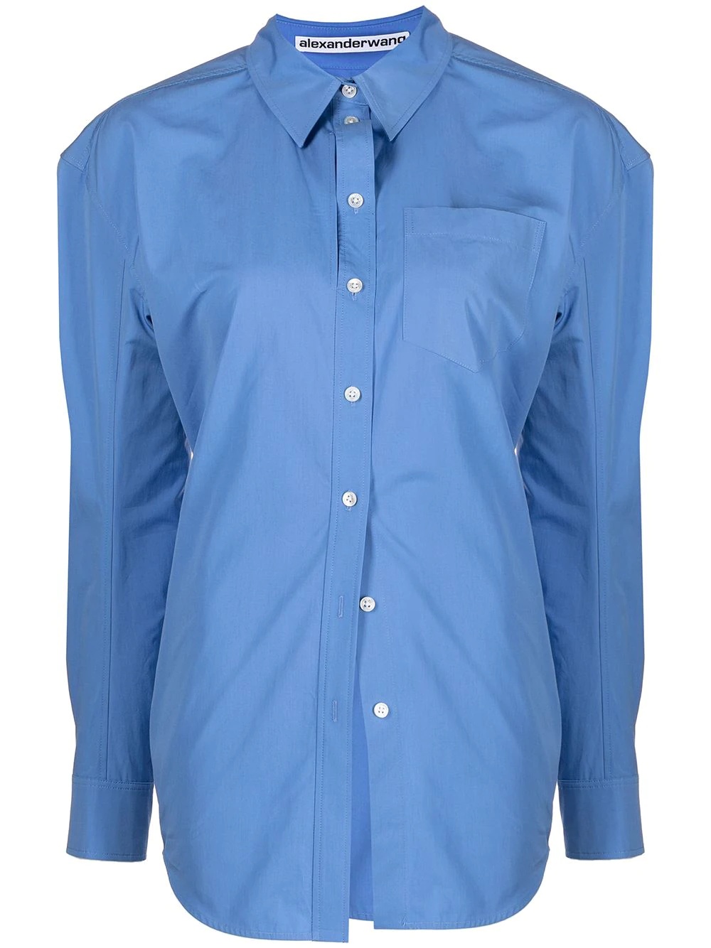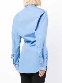 ruched button-up shirt sky-blue cotton classic collar front button fastening long sleeves curved hem Imported Composition Body: Cotton 100% SIZE & FIT Model measurements Height 5 ft 10 in(1.78 m) Bust/Chest 28.34 in(72 cm) Hips 35.43 in(90 cm) Waist 23.62 in(60 cm) FittingInformation This piece fits true to size. We recommend you get your regular size Designed for a close fit at the bust and waist, but loose at the hip Made with a mid-weight non-stretch fabric Washing instructions Dry Clean Only