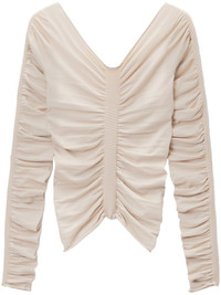 ruched pullover top Highlights - White - V-neck - Stretch-design - Long sleeves - Asymmetric hem Imported Composition Cupro 39%, Polyamide 32%, Polyester 24%, Elastane 5% Washing instructions Dry Clean Only