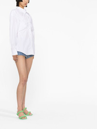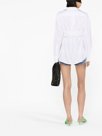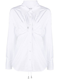 ruched-waist lonsleeved shirt white cotton pointed flat collar ruched detailing front button fastening buttoned-cuff sleeves curved hem Made in United States Composition Cotton 100% SIZE & FIT Model measurements Height 5 ft 10 in(1.78 m) Bust/Chest 29.92 in(76 cm) Hips 34.64 in(88 cm) Waist 23.62 in(60 cm) FittingInformation This piece fits true to size. We recommend you get your regular size Cut for a slim fit Made with a mid-weight non-stretch fabric Washing instructions Dry Clean Only