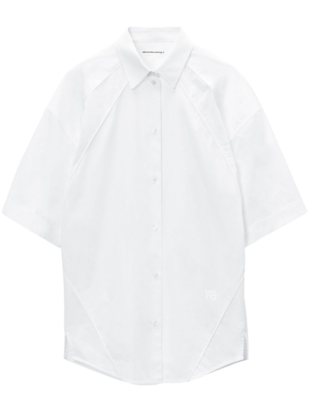 short-sleeve shirt dress Highlights - White - Poplin texture - Classic collar - Neck piping - Front button fastening - Short sleeves - Thigh-length - Curved hem Imported Composition Fabric 100% Washing instructions Read Manufacturer Guidelines