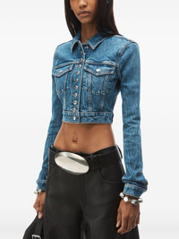 Shrunken denim jacket Highlights - Blue - Cotton blend - Front button fastening - Long sleeves - Classic collar - Chest flap pockets - Buttoned cuffs - Cropped Imported Composition Cotton 55%, Lyocell 44%, Elastane 1%