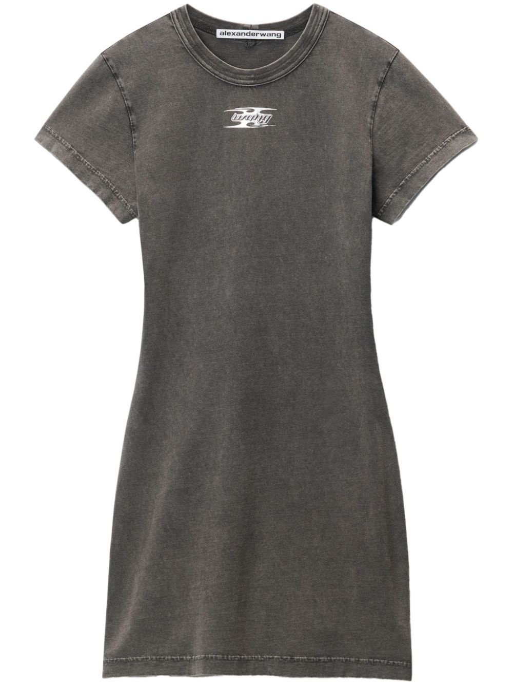 Shrunken mini T-shirt dress Highlights - Grey - Cotton - Washed - Jersey texture - Crew neck - Short sleeves - Logo patch to the front - Straight hem - Thigh-length Imported Composition Cotton 100%