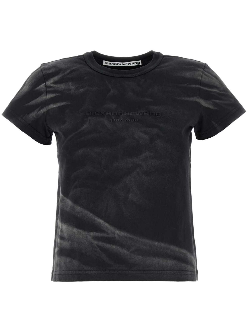 Distressed Logo Shrunken Tee in Cotton Jersey