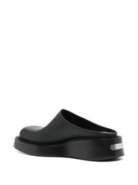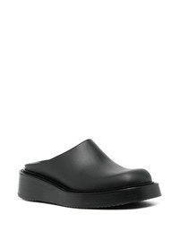 slip-on style mules Highlights - Slip-on style - Black - Slip-on style - Square toe - Branded footbed Imported Composition Leather 100% SIZE & FIT Measurement HEEL 1.69 in(4.3 cm) PLATFORM 0.86 in(2.2 cm)