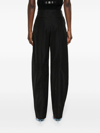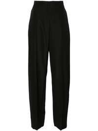 slit-detail tapered trousers Highlights - Black - Interlock twill weave - Pressed crease - Low-rise - Belt loops - Concealed front button, hook and zip fastening - Two side slash pockets - Two rear welt pockets - Rear slits - Tapered leg - Tailored cut Imported Composition Viscose 56%, Wool 44% SIZE & FIT Model measurements Height 5 ft 10 in(1.77 m) Bust/Chest 32.28 in(82 cm) Hips 35.03 in(89 cm) Waist 25.19 in(64 cm) FittingInformation Designed for a tapered fit, these trousers allow for a close fit at the waist and a loose unrestricted fit over the leg with a closer fit towards the ankle Made from a midweight non-stretch fabric This piece fits true to size – take your usual size Measurement FRONT RISE 10.98 in(27.9 cm) INSIDE LEG 32.99 in(83.8 cm) BACK RISE 12 in(30.5 cm) HIPS 37.99 in(96.5 cm) Hem Width 17.99 in(45.7 cm) WAIST 30 in(76.2 cm)