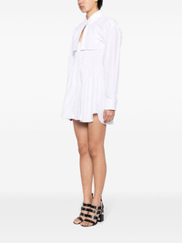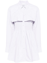 smocked mini shirt dress Cleverly designed to look like two pieces worn together, this Alexander Wang mini dress is layered with a cropped poplin shirt. It has a plunging neckline and smocked bodice that creates gathers through the curved skirt. Highlights - White - Cotton - Poplin texture - Layered design - Smocked panel - Front button fastening - Spaghetti straps - Plunging u-neck - Classic collar - Long sleeves - Buttoned cuffs - Mini logo tag at nape - Curved hem Imported Composition Cotton 100% SIZE & FIT Model measurements Height 5 ft 10 in(1.77 m) Bust/Chest 31.49 in(80 cm) Hips 35.43 in(90 cm) Waist 25.19 in(64 cm) FittingInformation Designed for a close fit at the chest and waist with a loose fit at the hip The adjustable shoulder straps allow for a preferred fit when worn Made from a midweight non-stretch fabric This piece fits true to size – take your usual size