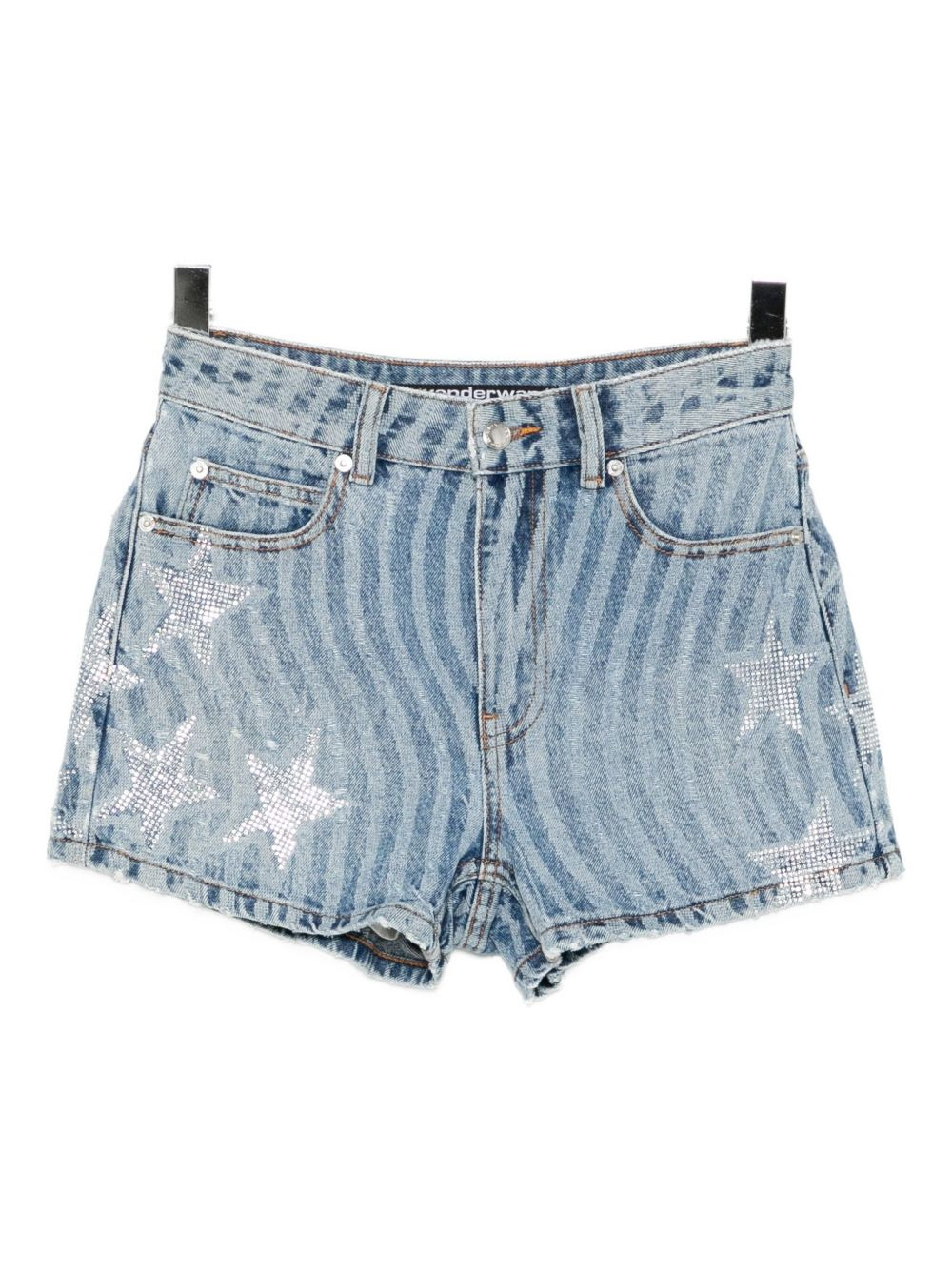 star-embellished denim shorts Highlights - Light blue - Front button and zip fastening - Classic five pockets - Logo patch to the rear Imported Composition Cotton 100% SIZE & FIT Model measurements Height 5 ft 10 in(1.78 m) Bust/Chest 31.88 in(81 cm) Hips 37 in(94 cm) Waist 25.19 in(64 cm) FittingInformation Designed for a slim fit that sits just away from the body offering a close yet comfortable fit Sturdy and hard-wearing, this denim piece offers no stretch Washing instructions Dry Clean Only