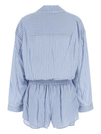 striped jumpsuit Highlights - Light blue - Pinstripe pattern - Front button fastening - Long sleeves - Chest patch pocket - Elasticated waistband Imported Composition Lyocell 100% Washing instructions Read Manufacturer Guidelines