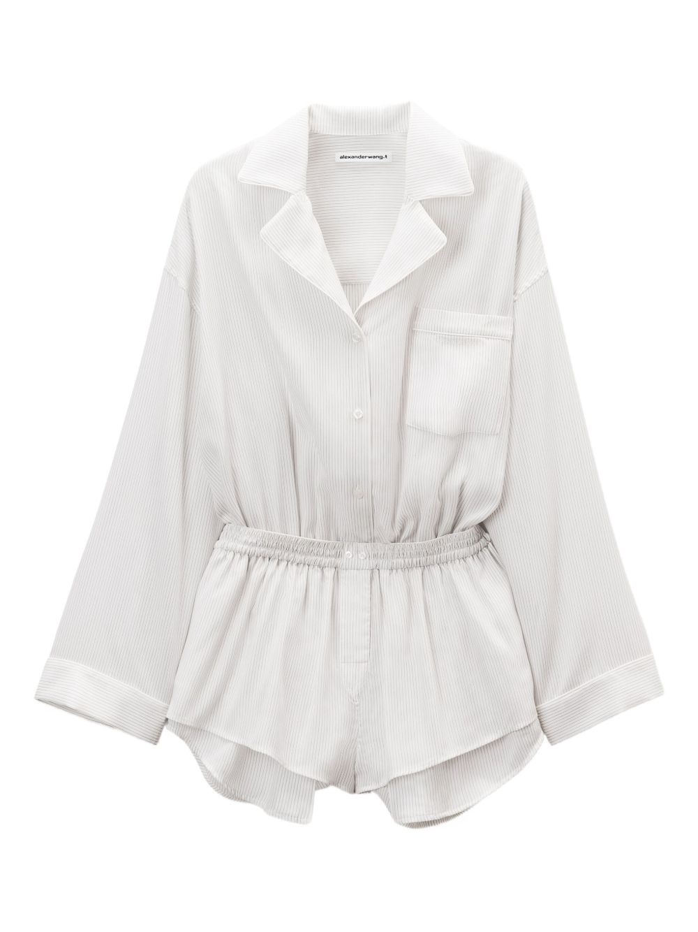 striped jumpsuit Highlights - Off-white - Striped pattern - Notched collar - Long sleeves - Button fastening - Elasticated waistband Imported Composition Cotton 100% Washing instructions Read Manufacturer Guidelines