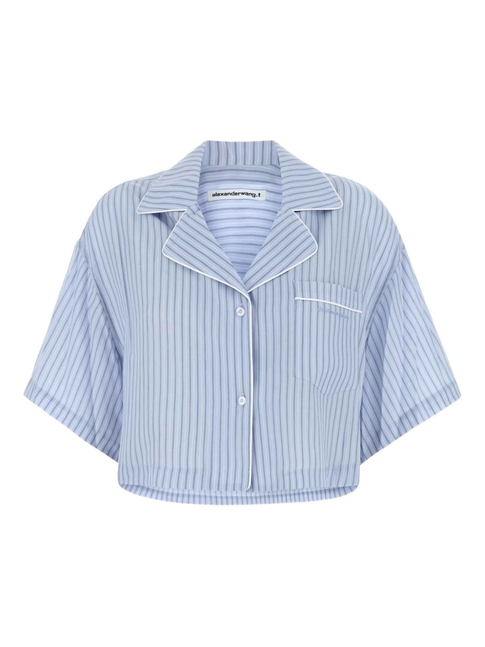 striped short-sleeve shirt Highlights - Light blue - Vertical stripes - Notched lapels - Chest pocket - Button fastening - Cropped design Imported Composition Lyocell 100%
