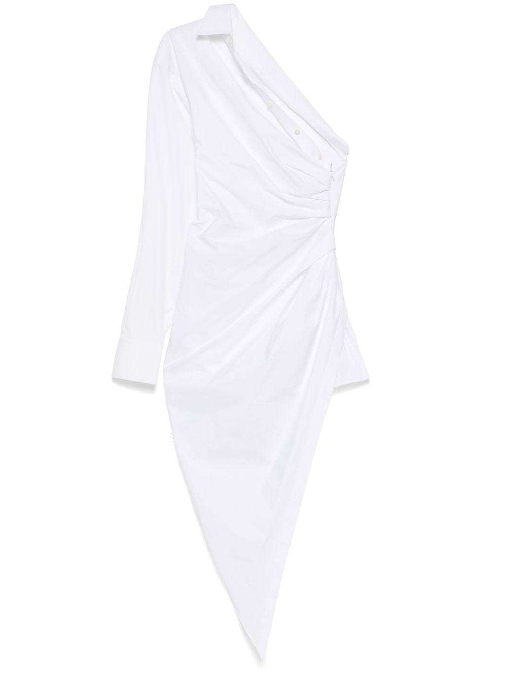 tailored asymmetric midi dress Highlights - White - Classic collar - One-shoulder - Concealed rear hook and zip fastening - Asymmetric hem Imported Composition Cotton 96%, Elastane 4% SIZE & FIT Model measurements Height 5 ft 10 in(1.77 m) Bust/Chest 31.49 in(80 cm) Hips 35.43 in(90 cm) Waist 25.19 in(64 cm) FittingInformation Designed for a close fit throughout The internal briefs provide a close and supportive fit Made from a midweight stretch fabric, this piece offers elasticity and flexibility when worn Washing instructions Dry Clean Only