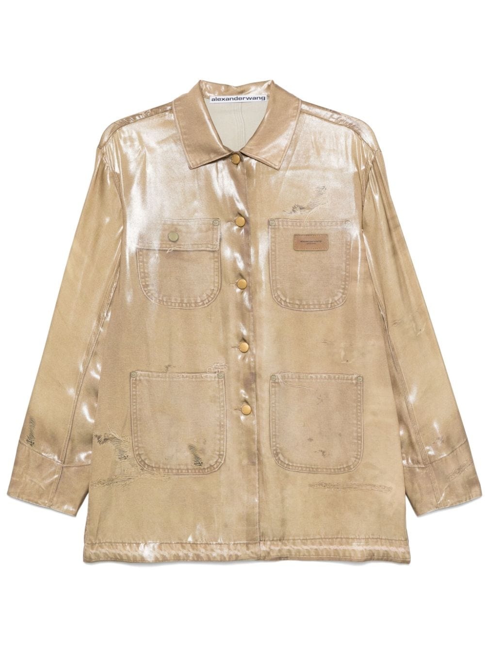trompe l'oeil-print shirt Highlights - Beige - High-shine finish - Trompe l'oeil print - Front button fastening - Spread collar - Drop shoulder - Long sleeves - Buttoned cuffs - Straight hem Imported Composition Polyester 100% SIZE & FIT Model measurements Height 5 ft 9 in(1.75 m) Bust/Chest 31.88 in(81 cm) Hips 34.64 in(88 cm) Waist 24.01 in(61 cm) FittingInformation Designed to be unstructured, offering a loose fit throughout Made from a lightweight non-stretch fabric Washing instructions Dry Clean Only