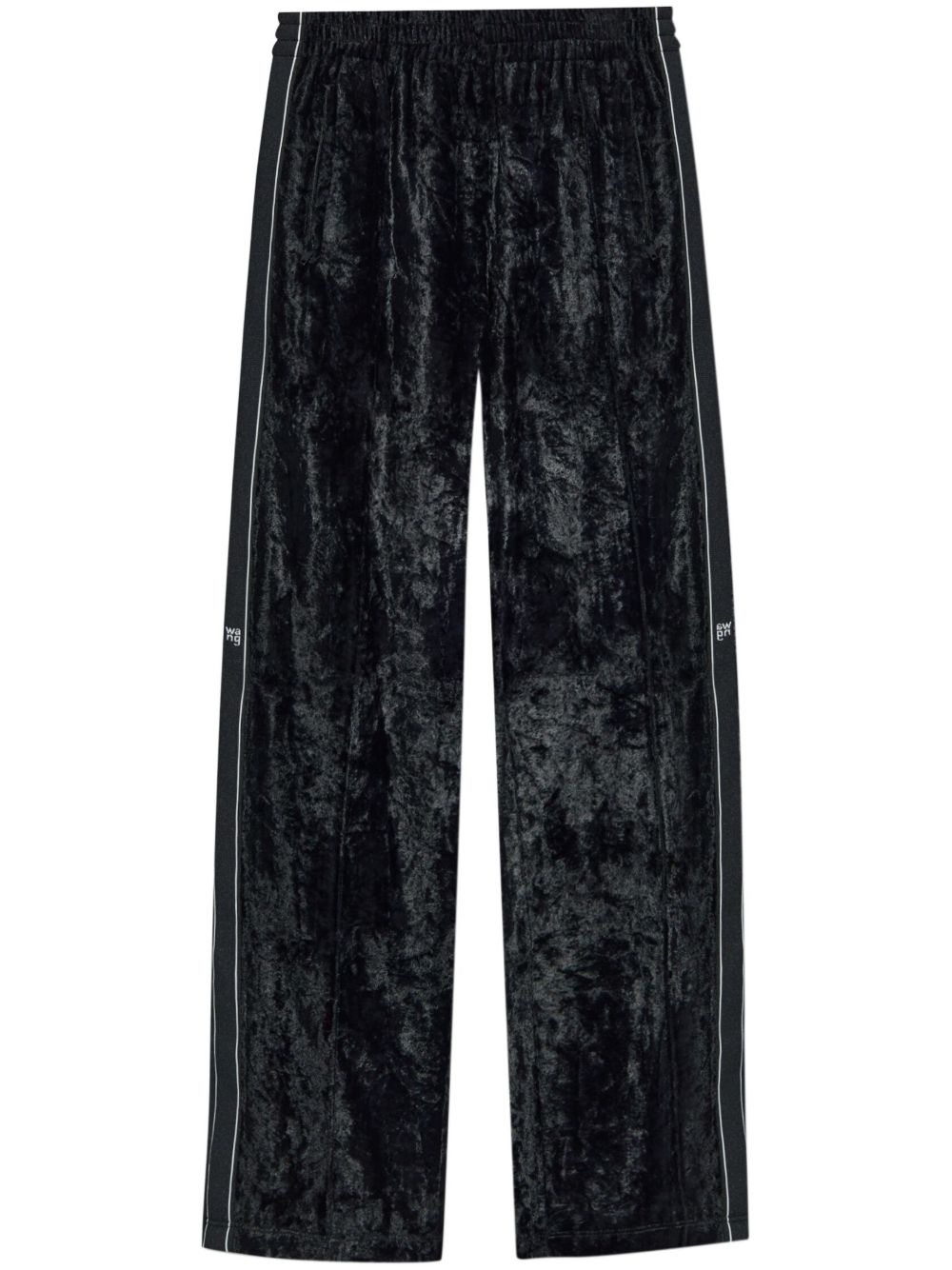velvet track pants Highlights - Black - Side stripe detailing - Elasticated waistband - Rear patch pocket - Straight leg Imported Composition Viscose 63%, Cotton 37%