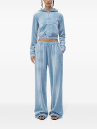 velvet track pants Highlights - Sky blue - Elasticated waistband - Slip pockets to the sides - Rear welt pocket - Embossed logo to the front Imported Composition Cotton 73%, Polyester 27%