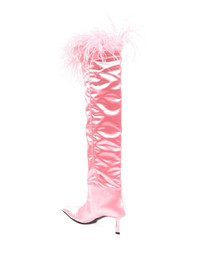 Viola 65mm feather-trim knee-high boots Alexander Wang embraces a playful aesthetic in the design of these Viola boots. Crafted in Italy from lustrous pink satin, they're topped with frothy ostrich feather trims and slouch languidly at the ankles. Imported Composition Calf Leather 100% SIZE & FIT Measurement CIRCUMFERENCE 15.74 in(40 cm) HEEL 3.34 in(8.5 cm) HEIGHT 25.39 in(64.5 cm) Sole height 0.39 in(1 cm)
