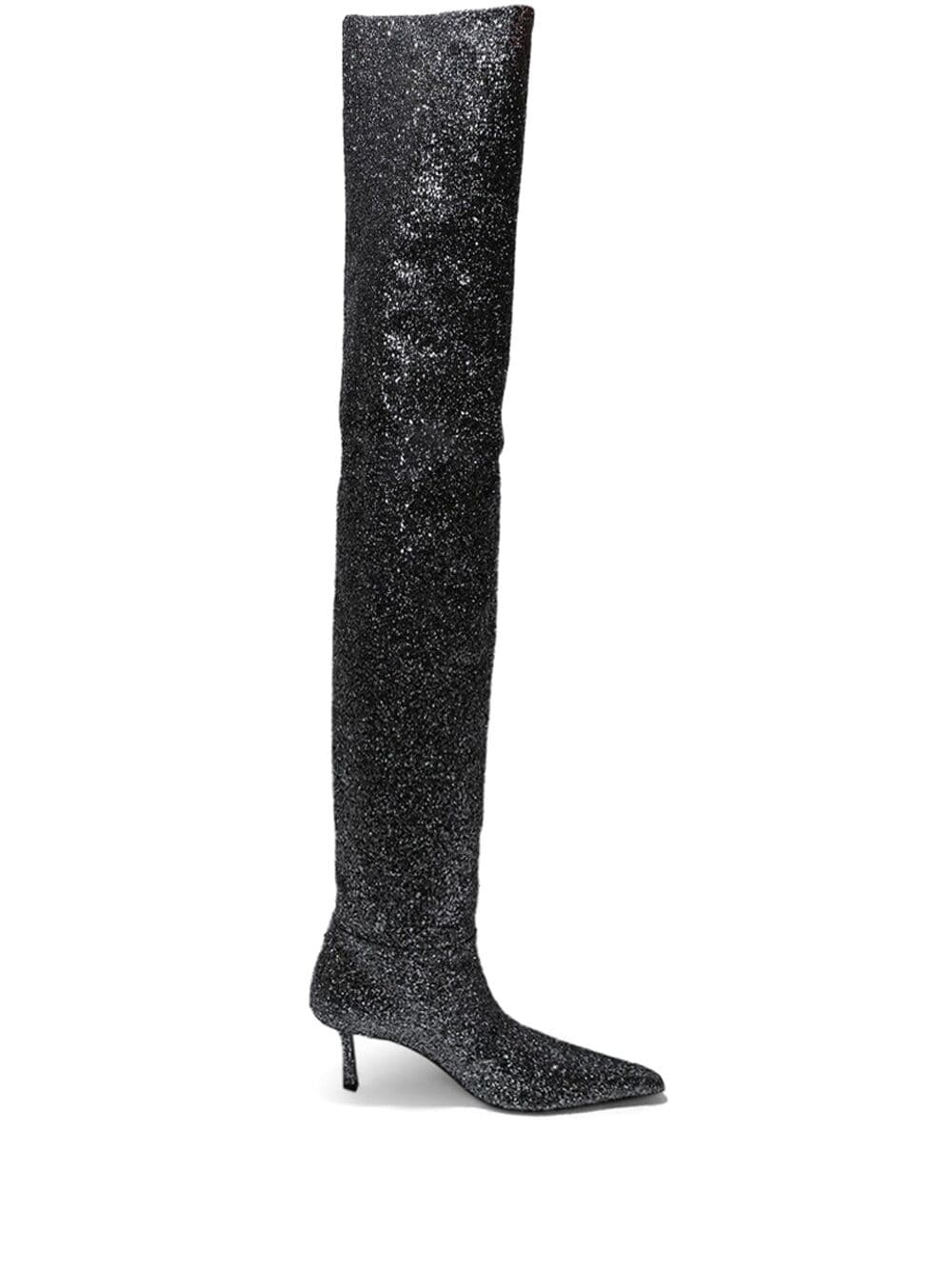 Viola 65mm knee-high boots Highlights - Black - Calf leather/goatskin - Glitter detailing - Pull-on style - Pointed toe - Knee-high - 65mm mid heel Made in Italy Composition Lining: Goat Skin 100% Outer: Polypropylene 100% Sole: Calf Leather 100%