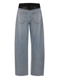 wide-leg jeans Highlights - Light blue - Concealed fly and button fastening - Classic five pockets - Belt loops - Logo print to the front Imported Composition Cotton 100%, Polyester 100%