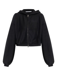 zip-up hoodie Highlights - Black - Hooded neckline - Zip fastening - Long sleeves - Balloon sleeves - Embroidered logo Imported Composition Cotton 100% Washing instructions Machine Wash